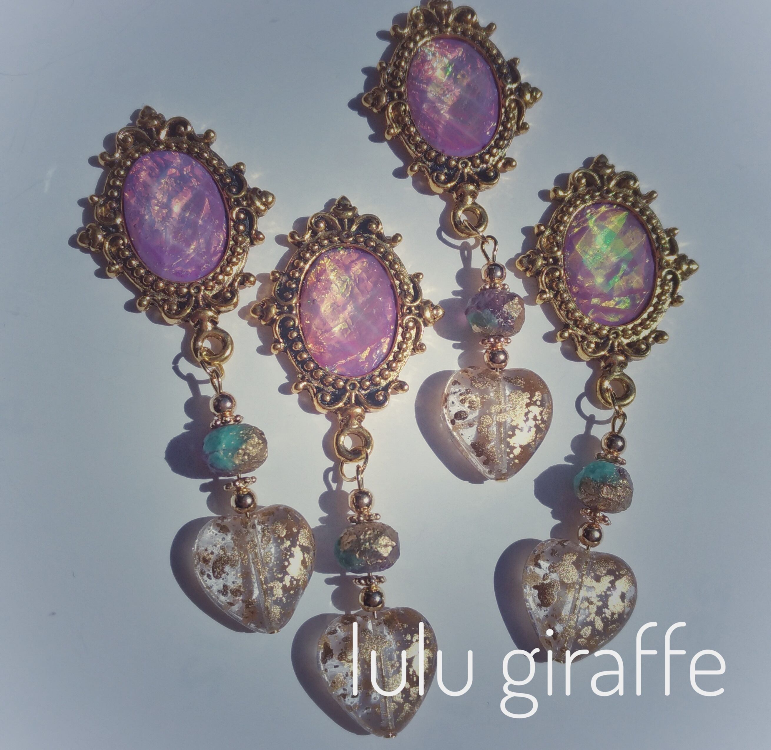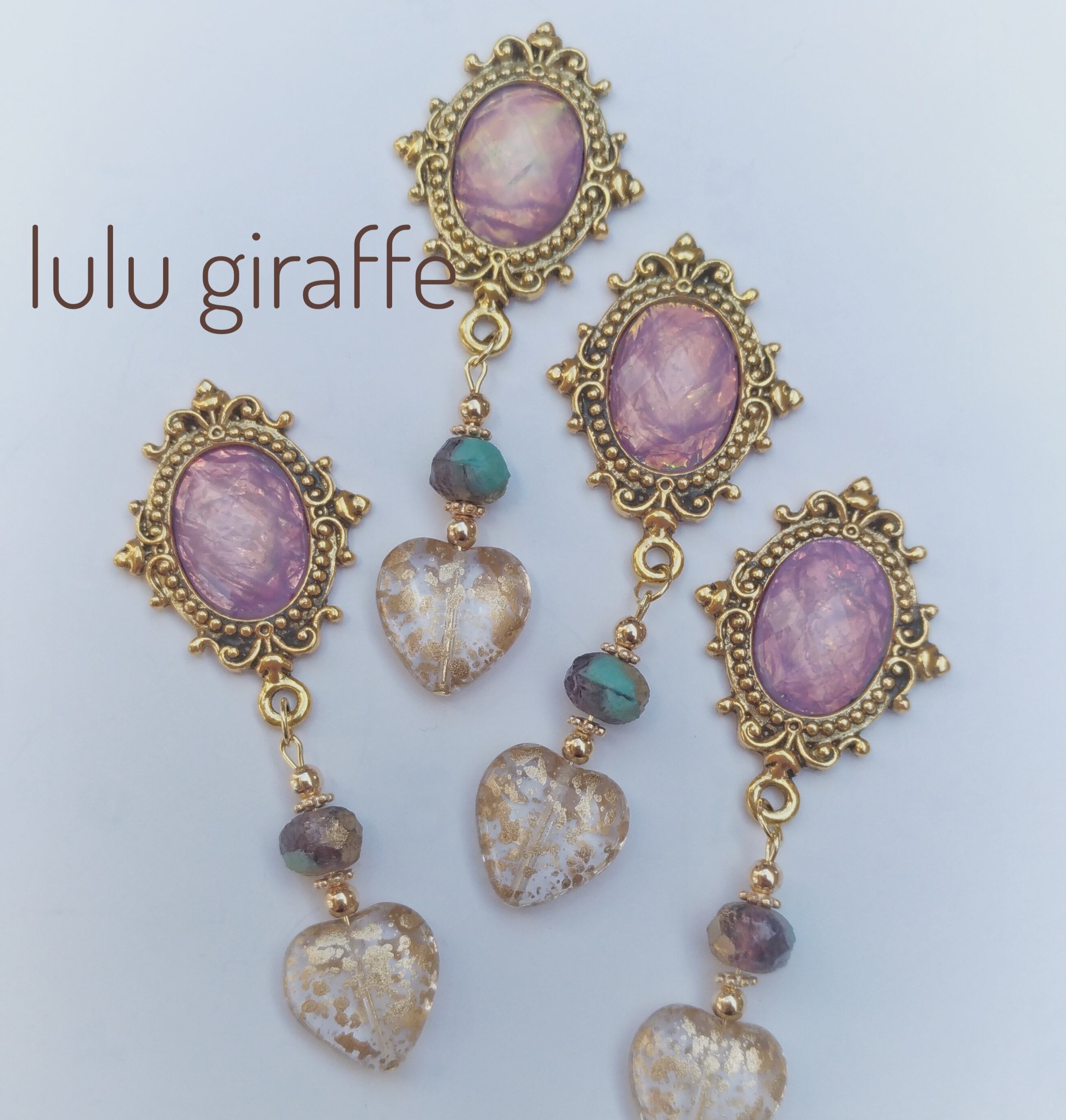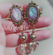 アンティークゴールド台座にオリジナルオパールカボションをあしらい、チェコビーズ、金箔ハートビーズをあわせました。
