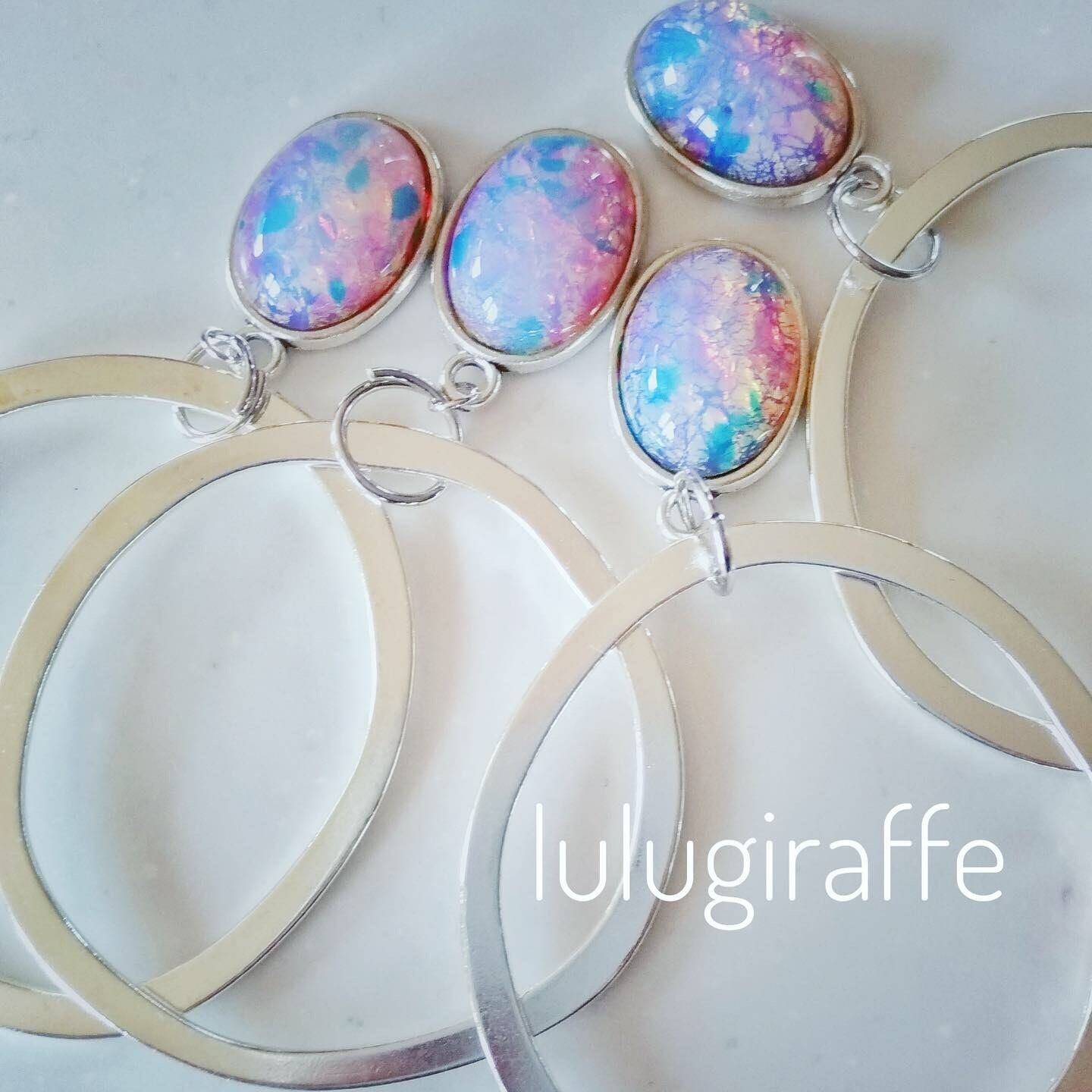 ドイツヴィンテージのファイヤーオパールカボションにビッグシルバーフープを合わせた大人カジュアルなトレンドアクセサリー