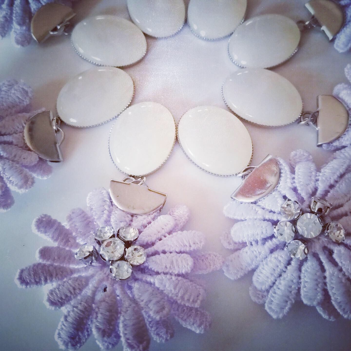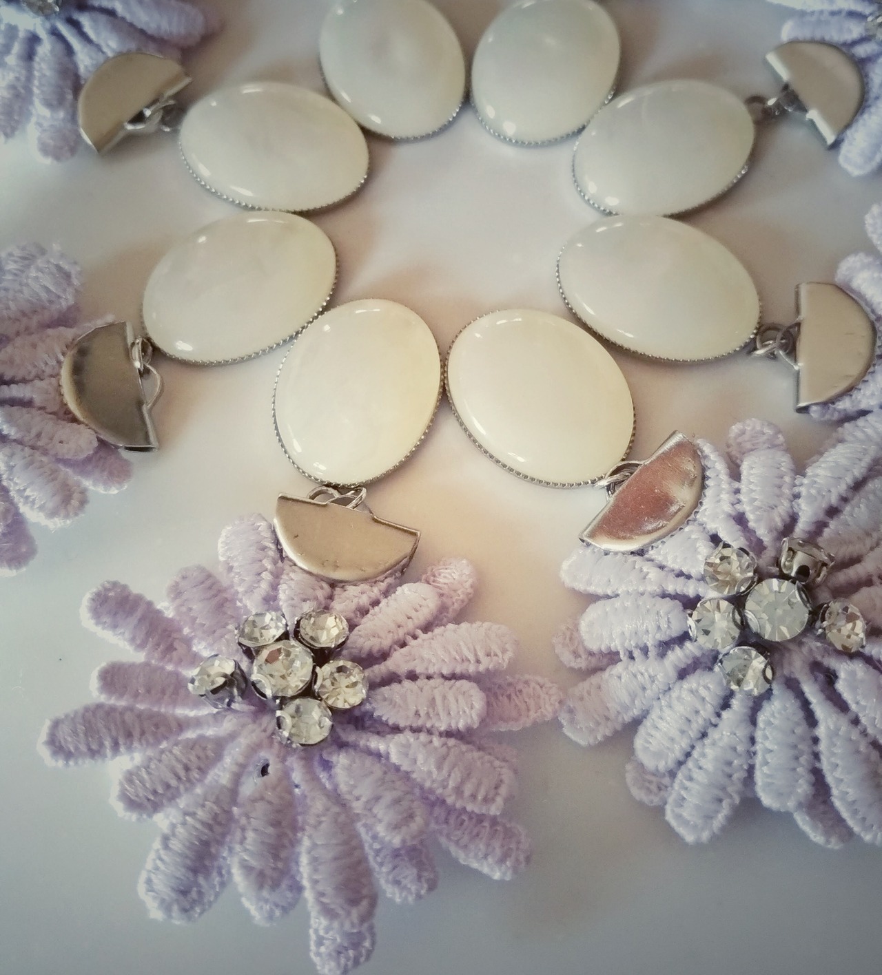 ホワイトシェルのマーブルカボションにラベンダーカラーのレースフラワーを合わせた大人ガーリーピアス♦イヤリング