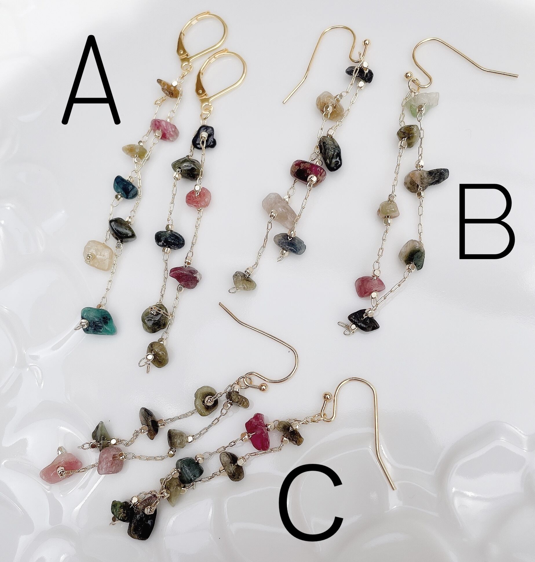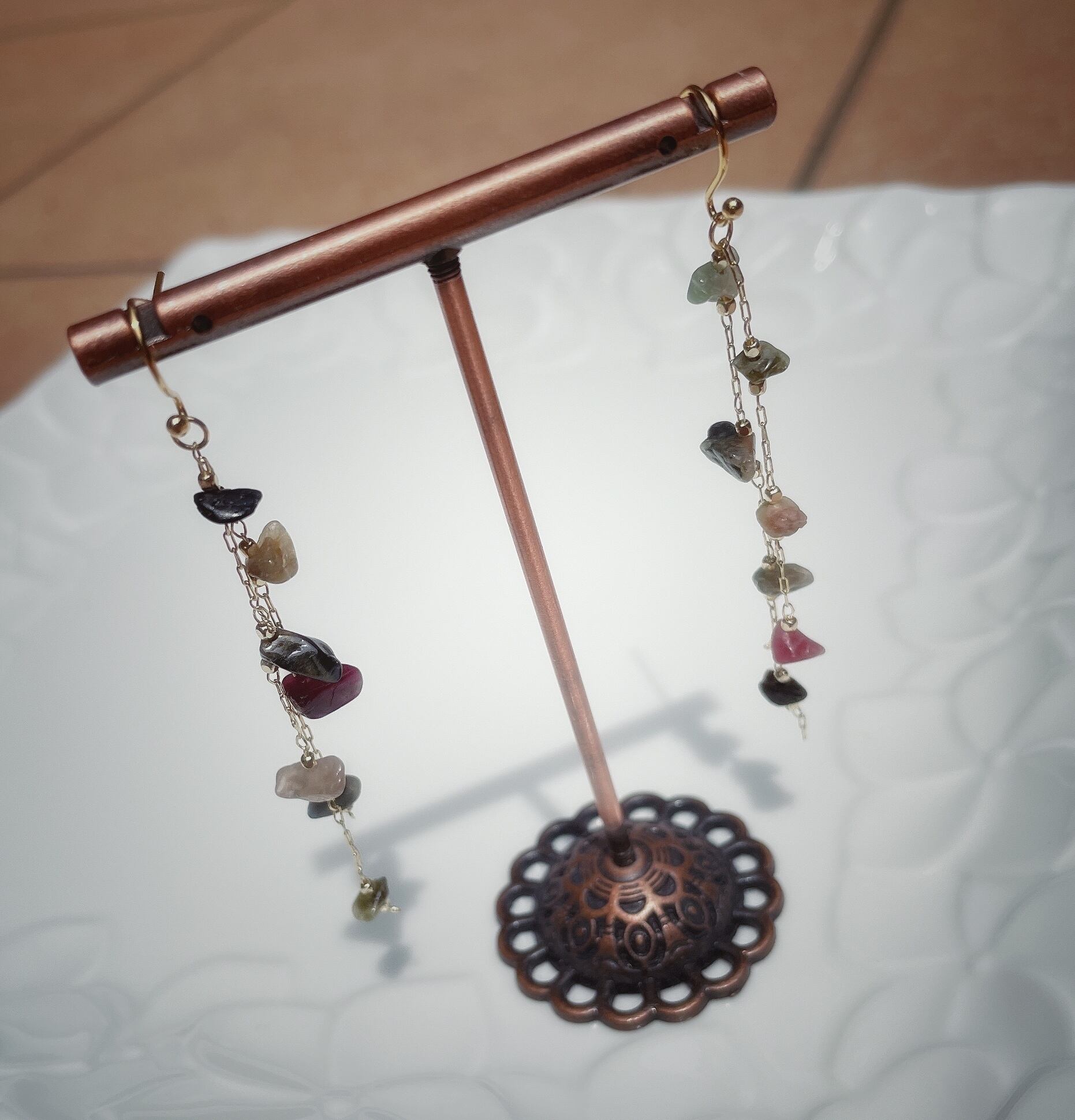 天然石longchainピアス・イヤリング