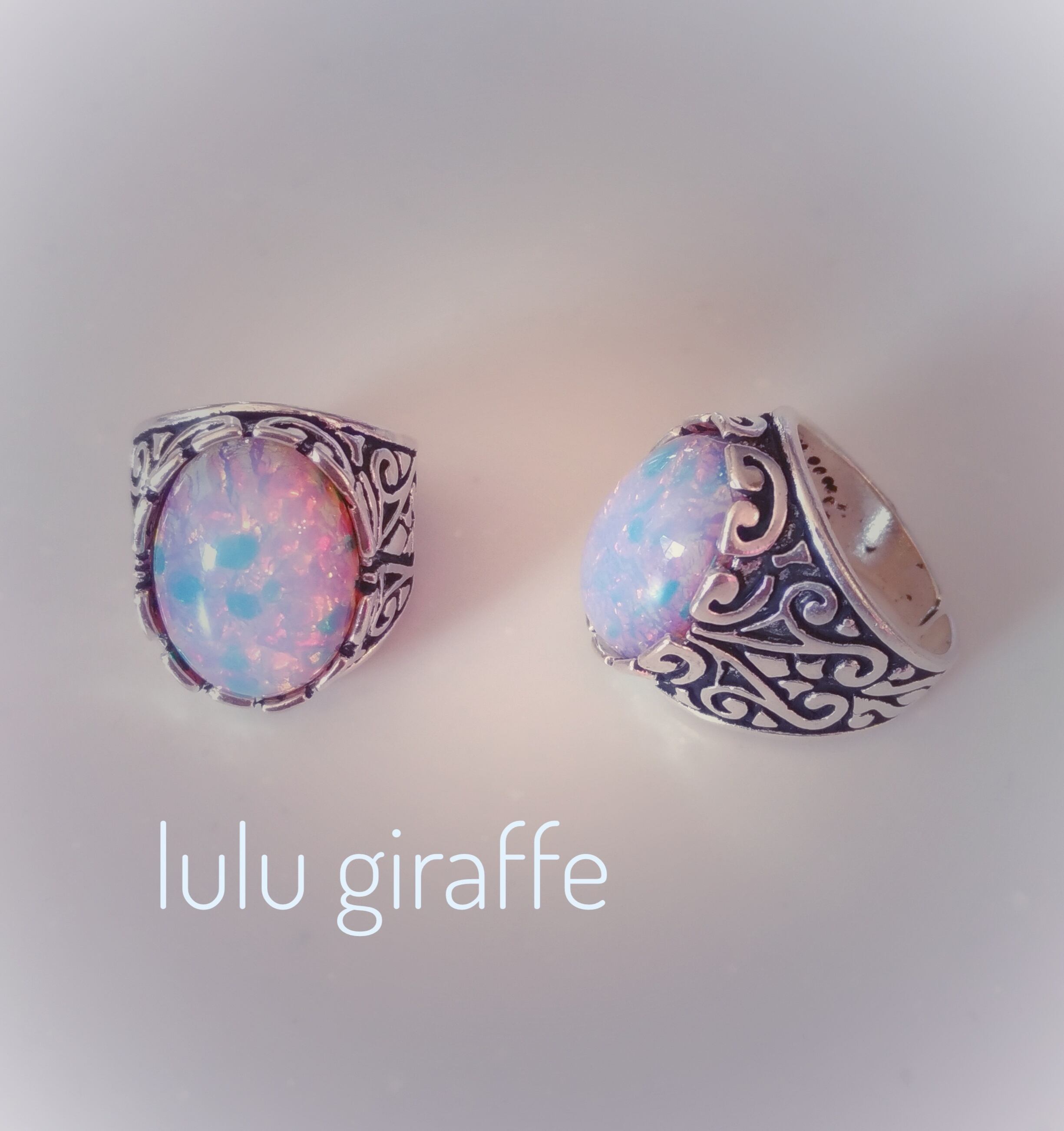 チェコヴィンテージのファイヤーオパールをはめ込んだアンティークリングです。