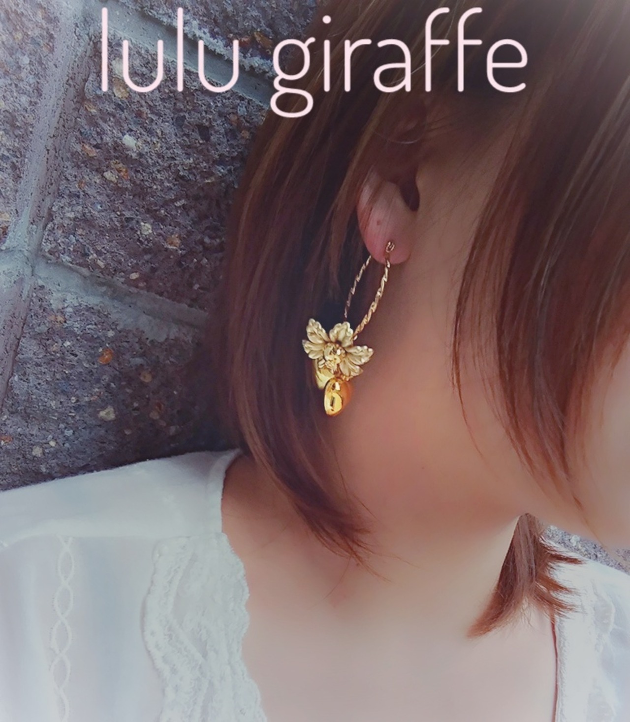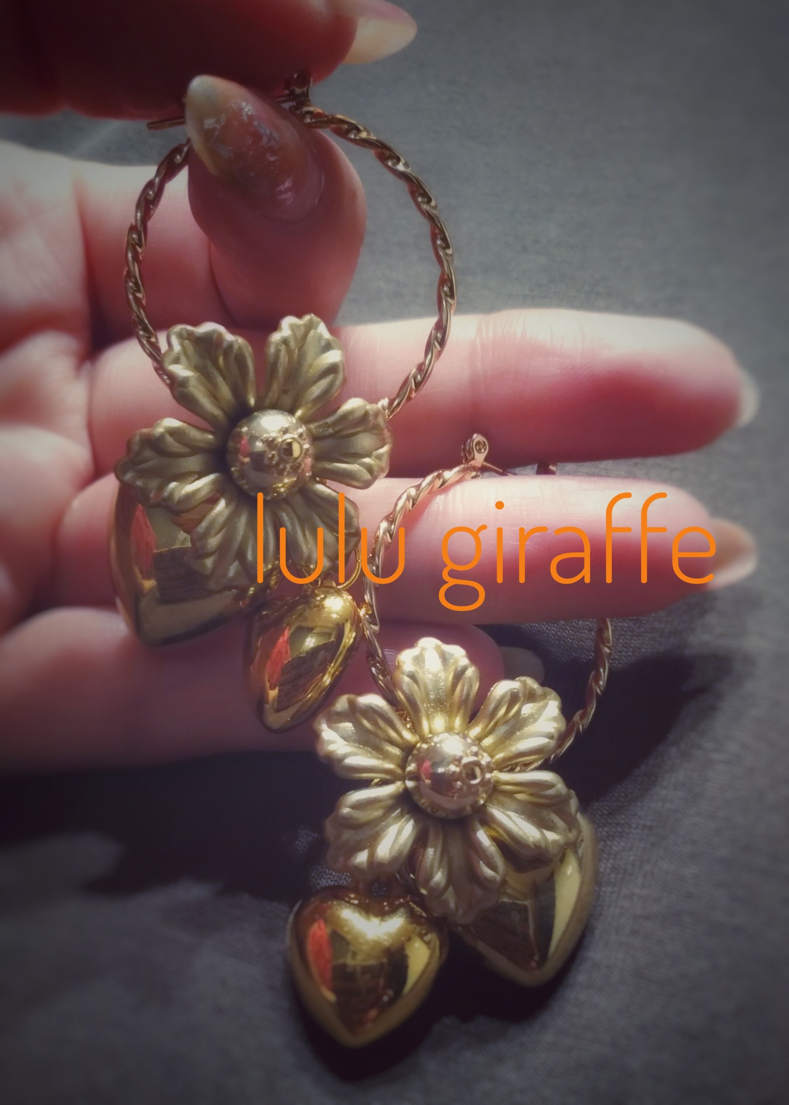 アンティーク調のゴールドフラワーと大きさ違いのハートを贅沢に合わせた大ぶりフープピアス♡