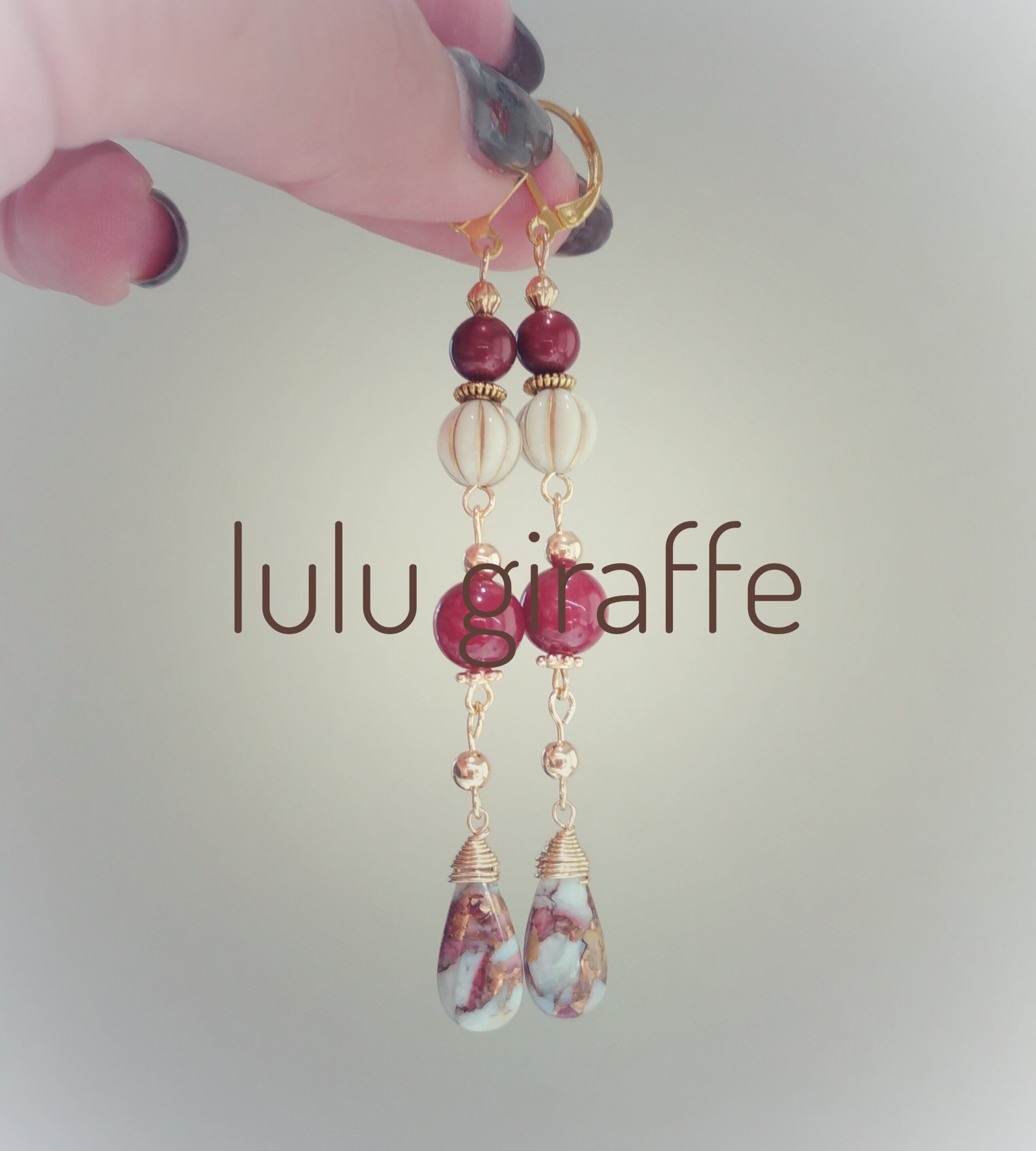 〇バーガンディーロングピアス