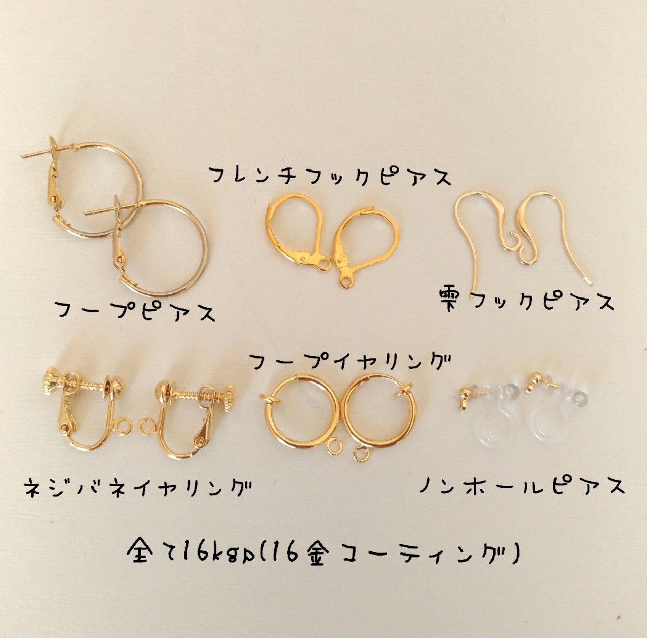 ●ノンホールピアス ●樹脂フックピアス(ゴールド)