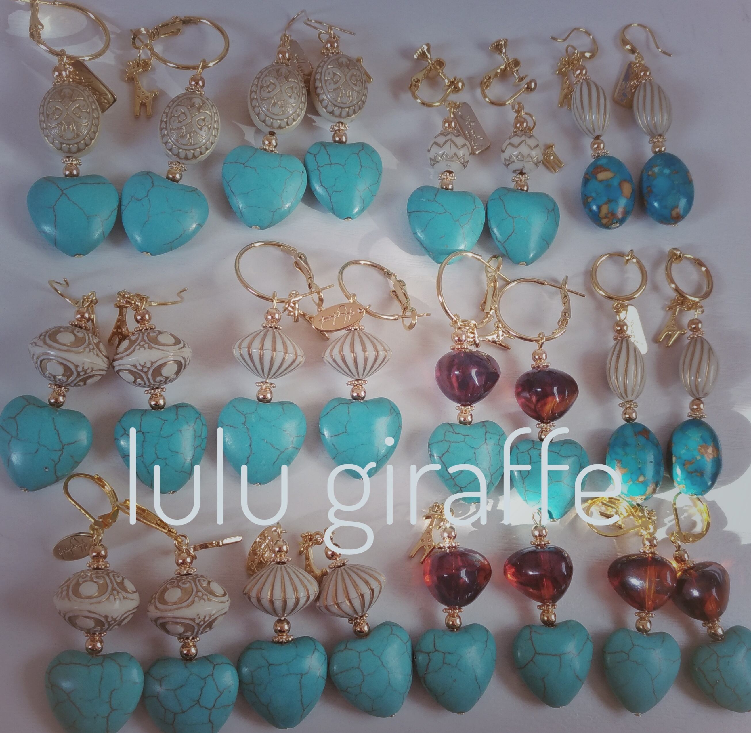 ジャスパーターコイズ模様のビーズにアンティークビーズを合わせたピアス・イヤリング
